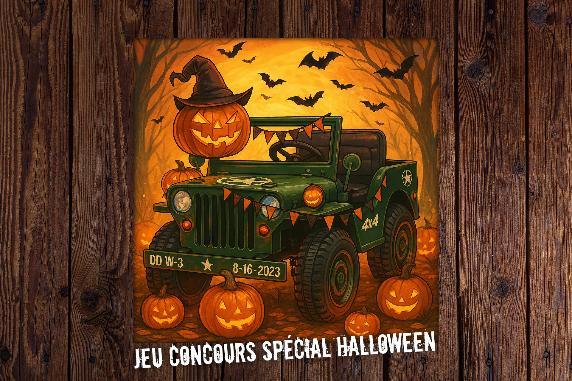 - Jeep Willys 12V 1 place, d’une valeur de 159€. Choix coloris et taille, suivant stock.