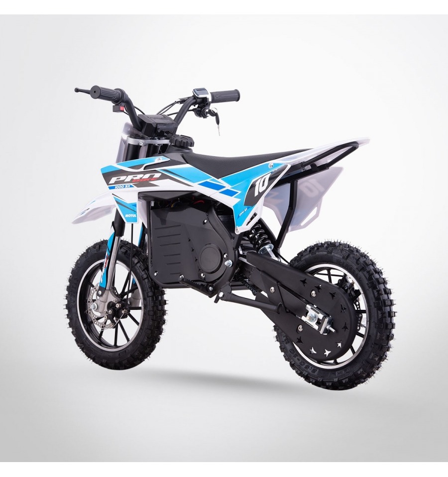 Comme chaque enfant est différent, au niveau de l'expérience ou au niveau de la maturité, la moto électrique enfant dispose d'un système pour limiter la vitesse maximale de la moto enfant. Ce système repose sur une clé de réglage. Vous pourrez sélectionner 3 vitesses : une lente, une intermédiaire et une rapide. Ce changement s'effectue en en tournant la clef afin de l'aligner sur le chiffre indiqué pour choisir la vitesse. Pour une découverte de la moto enfant, il est préférable de lui faire commencer avec la vitesse la plus lente afin que le jeune pilote puisse rapidement maîtriser sa moto électrique. Grâce à ses pneus cross de 10 pouces, son système de frein réactif et ses suspensions performantes, la moto enfant électrique 1000w est parfaite pour une utilisation cross et/ou dans votre jardin. De plus, la moto électrique enfant garantira des heures d'amusement, en silence. L'enfant pourra piloter tout en profitant des bruits de la nature ; et s'il pilote dans votre jardin, vous éviterez de déranger vos voisins !