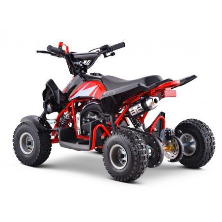 La sécurité est au coeur de nos préoccupation. Si l’enfant ne se sent pas en sécurité sur sa selle, il ne pourra prendre du plaisir et ne voudra pas apprendre car il n’aura pas confiance. C'est aussi par sécurité, qu'il faut compter sur un bon système de freinage. C'est pourquoi ce quad pocket possède un système de frein composé d'étriers, de plaquettes et de disques de frein (2 pour l’avant et un pour l’arrière). En plus du freinage, il faut des suspensions parfaites afin de garantir une liaison au sol en toutes circonstances. Le pocket quad enfant Rex est équipé de 3 amortisseurs de bonne facture (2 pour l’avant et 1 pour l’arrière). Toujours pour la sécurité, la quad pocket 50cc Rex est équipé d’un coupe-contact au poignet. Ainsi, si l’enfant tombe du quad 50cc, ce dernier se coupera immédiatement. Bien sûr, avant d’installer votre enfant sur le pocket quad, il faudra l’équiper de la tête aux pieds. Pour cela, n'hésitez pas à consulter nos équipements !